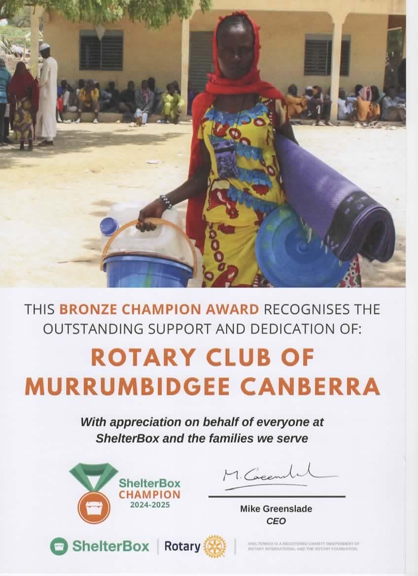 At the end of each term we give Rotary Youth Respect Awards (certificate and money) to students at the Bimberi Youth Justice Centre school.